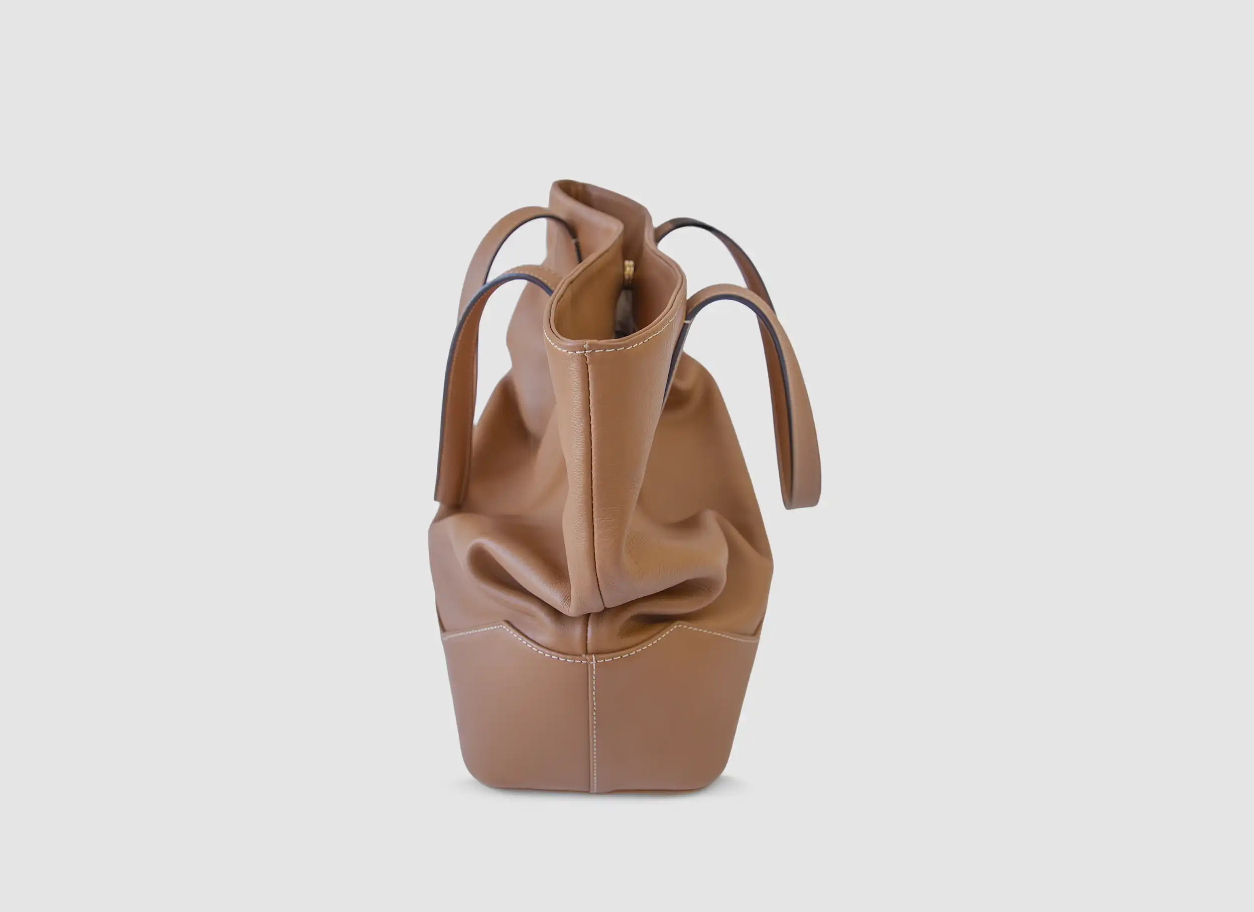 Sus asas largas permiten llevarlo cómodamente al hombro, y su base estructurada aporta estabilidad sin restar flexibilidad al cuerpo del bolso.