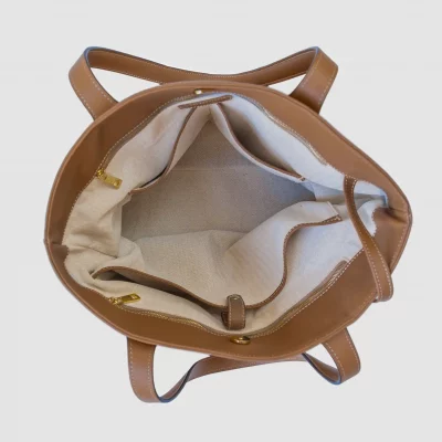 Un bolso amplio, ligero y cuidadosamente estructurado, pensado para mujeres que necesitan llevarlo todo —y encontrarlo siempre—. Confeccionado en piel de ternera 100%, es un diseño de líneas limpias con una organización interior excepcional, forrado de algodón con mezcla técnica de poliéster, en un tejido de estructura espiga que aporta cuerpo y resistencia.
